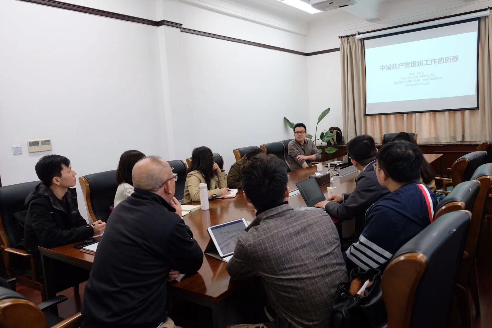 之后,由来自中国人民大学党史党建研究院夏璐博士就“中国共产党组织工作的历程”作专题报告。夏璐博士从新民主主义革命、社会主义革命和建设以及改革开放与社会主义现代化建设三个时期对党的组织工作进行细致阐述,展现了党的组织建设在革命、建设和改革中跌宕起伏却又不断前进的光辉历程。