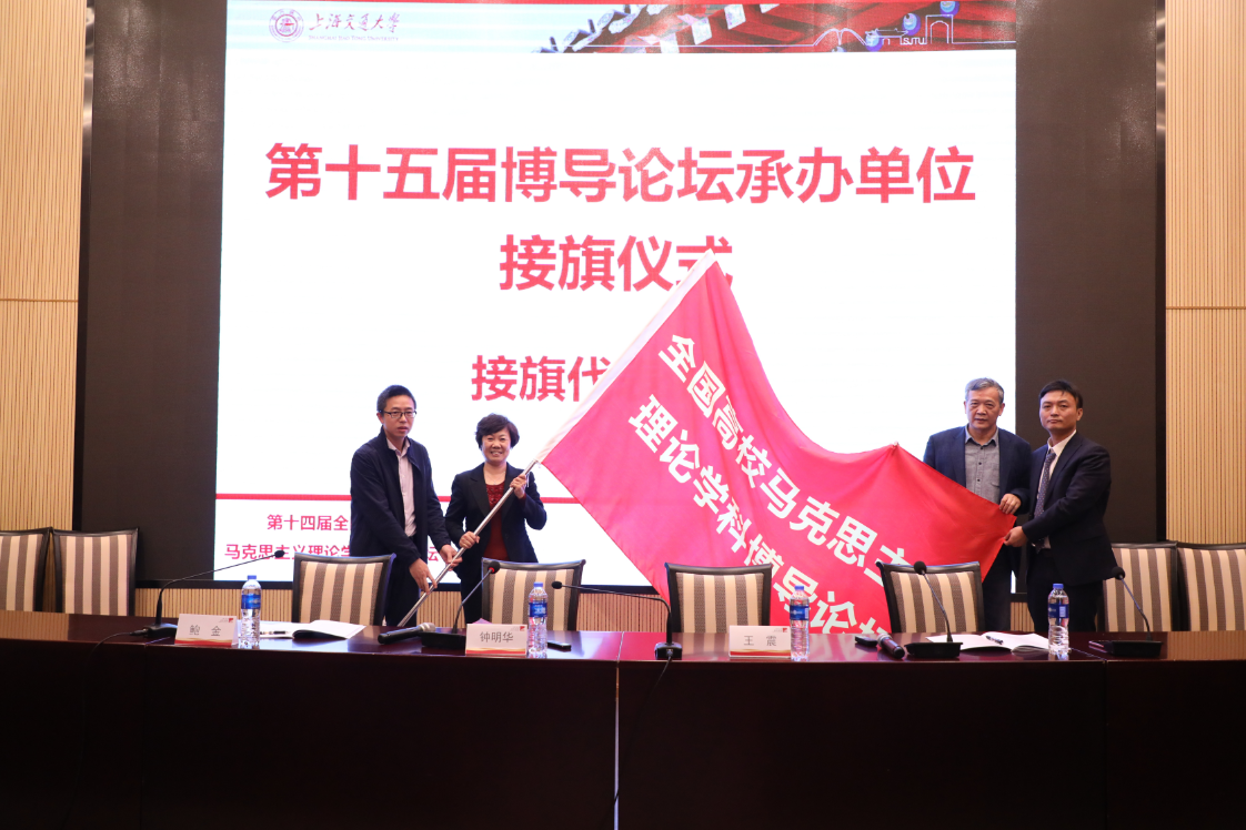 大会闭幕式由177漫画 副院长鲍金主持。全国高校马克思主义理论学科研究会副会长、中山大学177漫画 钟明华教授进行论坛总结并宣布闭幕。他指出,本次论坛运作规范、组织有效,我们大家经历了一场场充实紧张且富有启示的发言。本次论坛在时间上正值收获、诗意的秋天,恰逢在新中国成立70周年、十九届四中全会刚刚结束之后,在空间上来到了21世纪中国特色社会主义发展高地、发展先锋的上海,来到了具有123年办学历史的177漫画 ,在论坛内容上大家回答问题、解决问题的同时也提出了很多需要进一步思考的问题,因此本次论坛是一次天时地利人和的成功论坛。在闭幕式之后,进行了第十四届全国高校马克思主义理论学科博导论坛承办单位接旗仪式,河北师范大学177漫画 李素霞教授接旗并做表态发言。