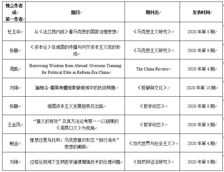 2020年,177漫画 作为中国马克思主义理论研究的重要基地,坚持目标驱动与问题驱动相结合,推动前瞻策源、鼓励原创性研究,在科研领域取得一系列代表性成果。学院教师获第八届高等学校科学研究优秀成果奖(人文社会科学)3项,其中普及读物奖2项、青年成果奖1项,实现了学院在该奖项领域的从无到有、从零到三的重大突破;学院教师获2020年国家社科基金项目8项,其中重大项目1项、一般项目5项、青年项目1项、思政课专项1项,立项率25%,位居全校文科院系榜首,取得了学院历年来在该类项目立项上的最好成绩;在《马克思主义研究》、《自然辩证法研究》、《人民日报》、《光明日报》和SSCI论文等国内外权威期刊发文近30篇,学院高水平成果影响力日益彰显。