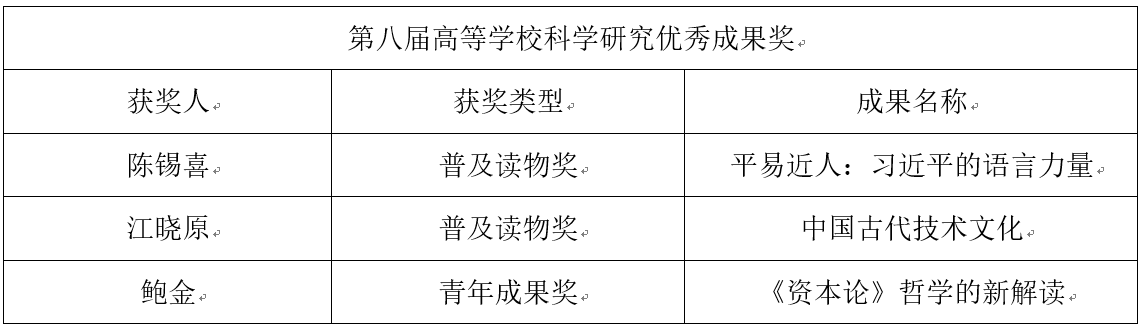 一、第八届高等学校科学研究优秀成果奖(人文社会科学)获奖情况
