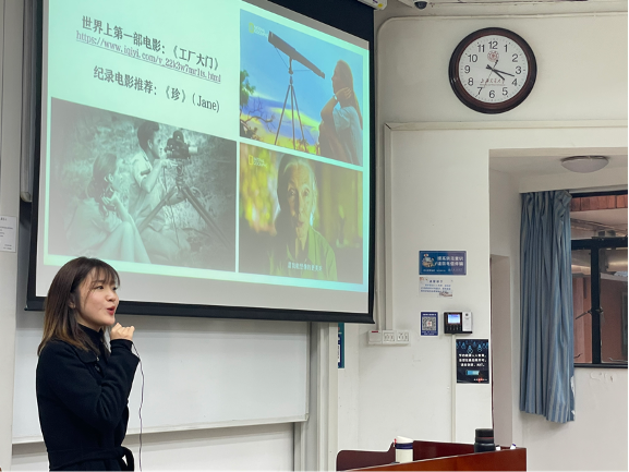 卢晏羚着重介绍了纪录片《大上海》中的上海历史,从独特的视角出发向同学们展现了不一样的上海历史,体会上海这座英雄城市蕴藏的深厚历史底蕴。同学们聚精会神,认真聆听卢晏羚导演带来的分享。最后,播放了纪录片《大上海》的片段,让同学们切身体会到了纪录片的魅力。