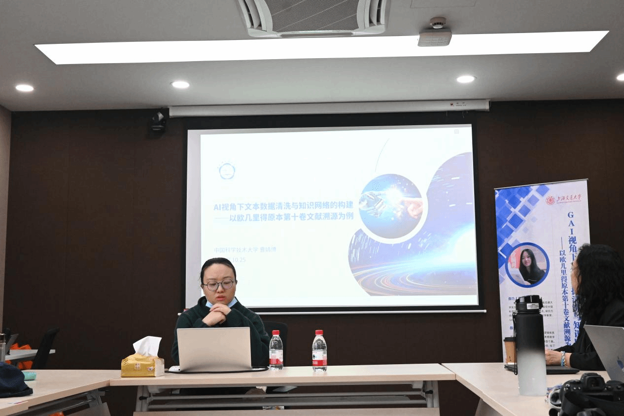 2025年11月12日,“GAI视角下文本数据清洗与知识网络的构建——以欧几里得原本第十卷文献溯源为例”讲座在177漫画 A400会议室举行。本次讲座由177漫画 科学史与科学文化研究院数学史二级学科团队邀请中国科学技术大学人文学院曹婧博副研究员主讲,萨日娜教授主持。