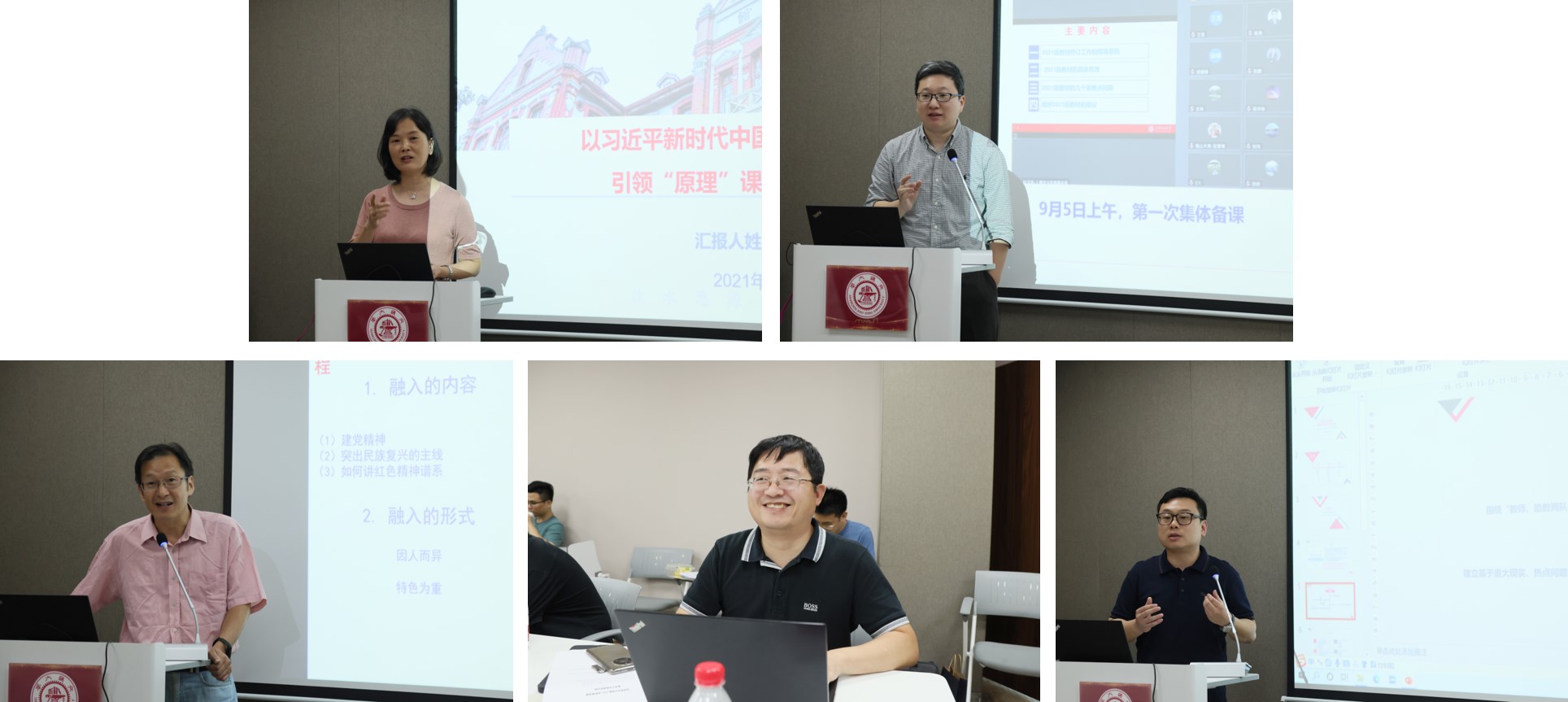 各教研室主任分别结合2021新版教材,就各门课程如何以习近平新时代中国特色社会主义思想全面引领、重塑新教材的教学做了规划汇报,包括学情研判的落实、新旧版本教材的对比、教学理念的更新、各个教学专题的调整、教学方式方法的优化、教学小组的运转等方面。学院教师代表围绕相关工作进行了热烈、深入而务实的讨论。