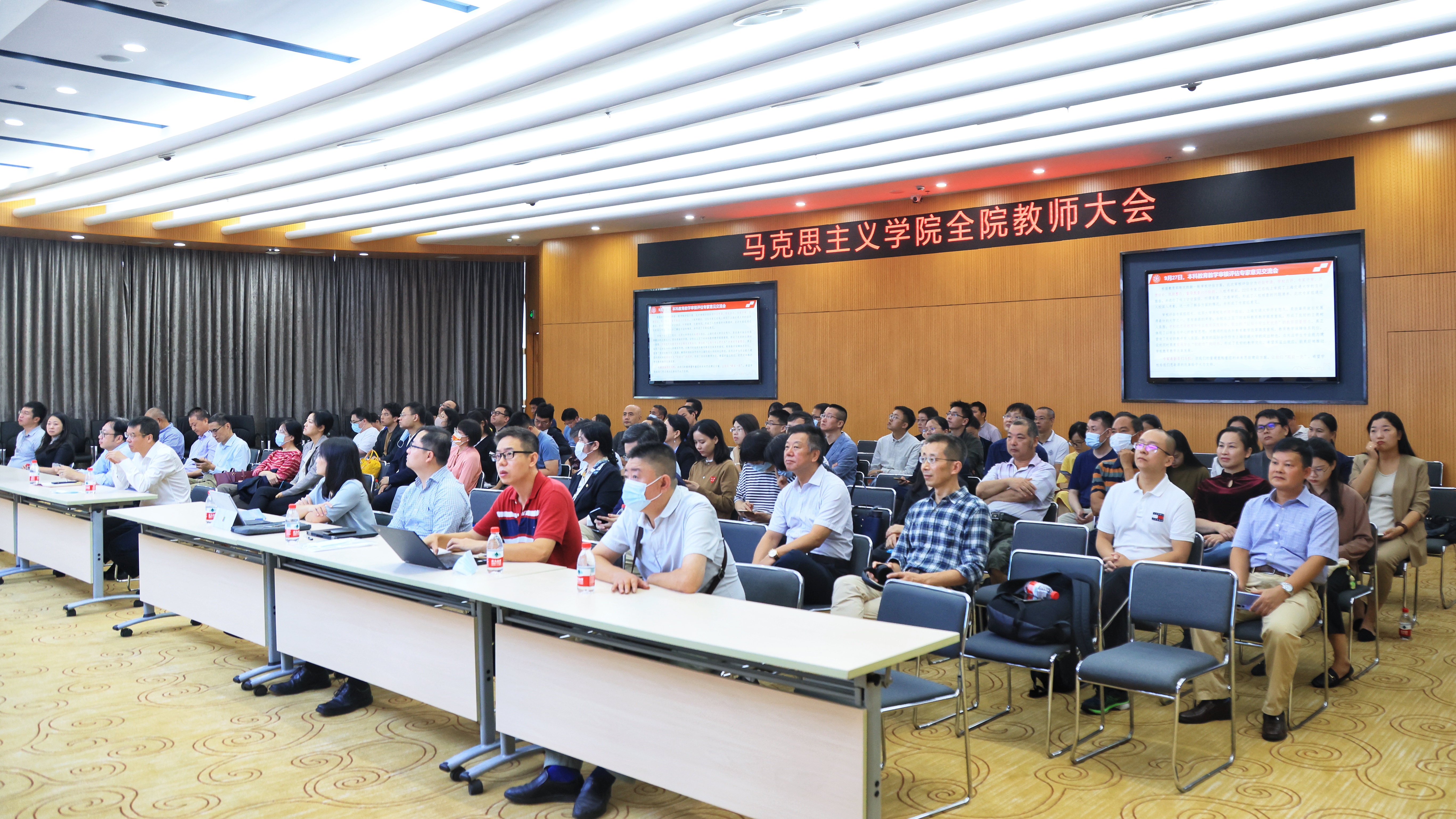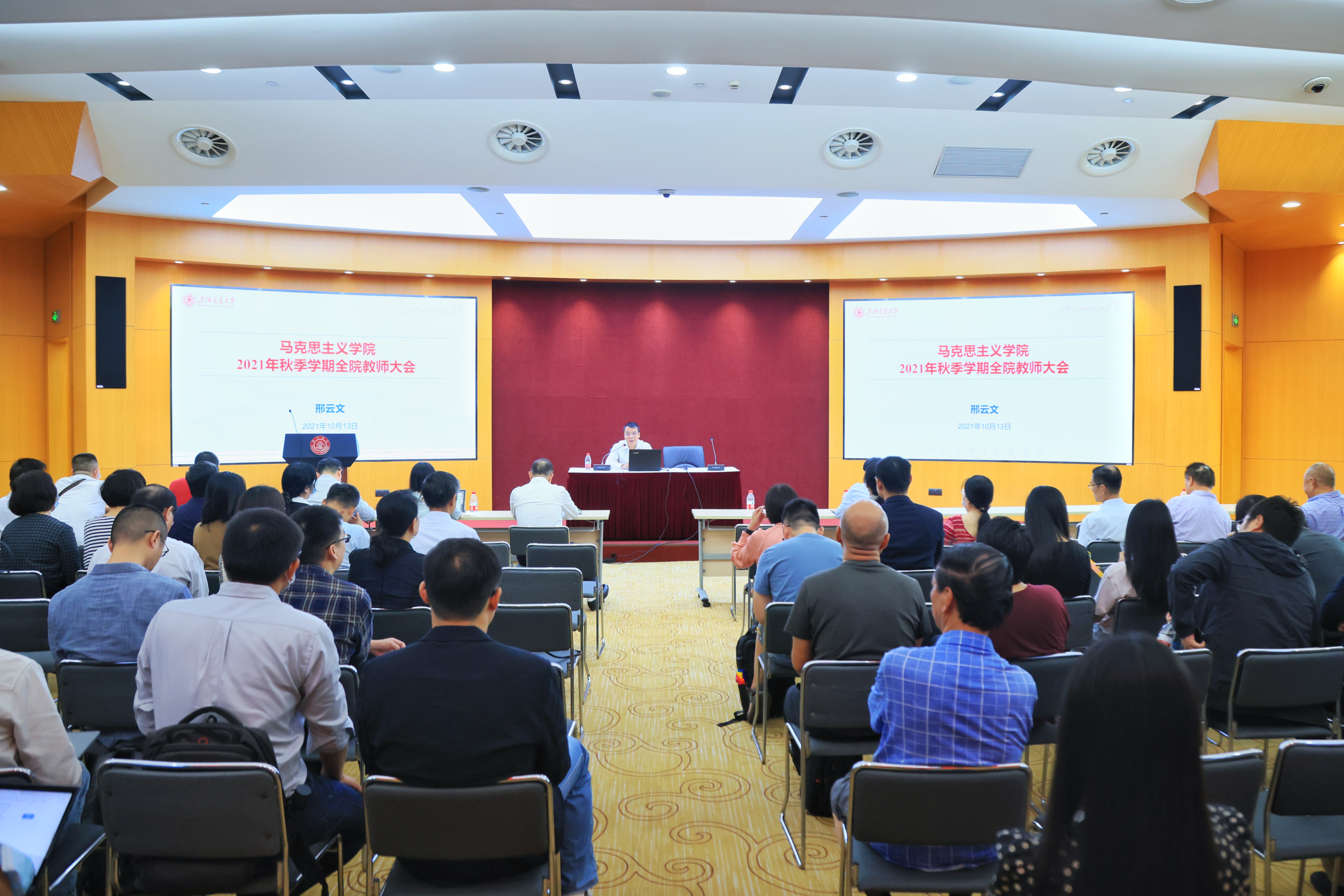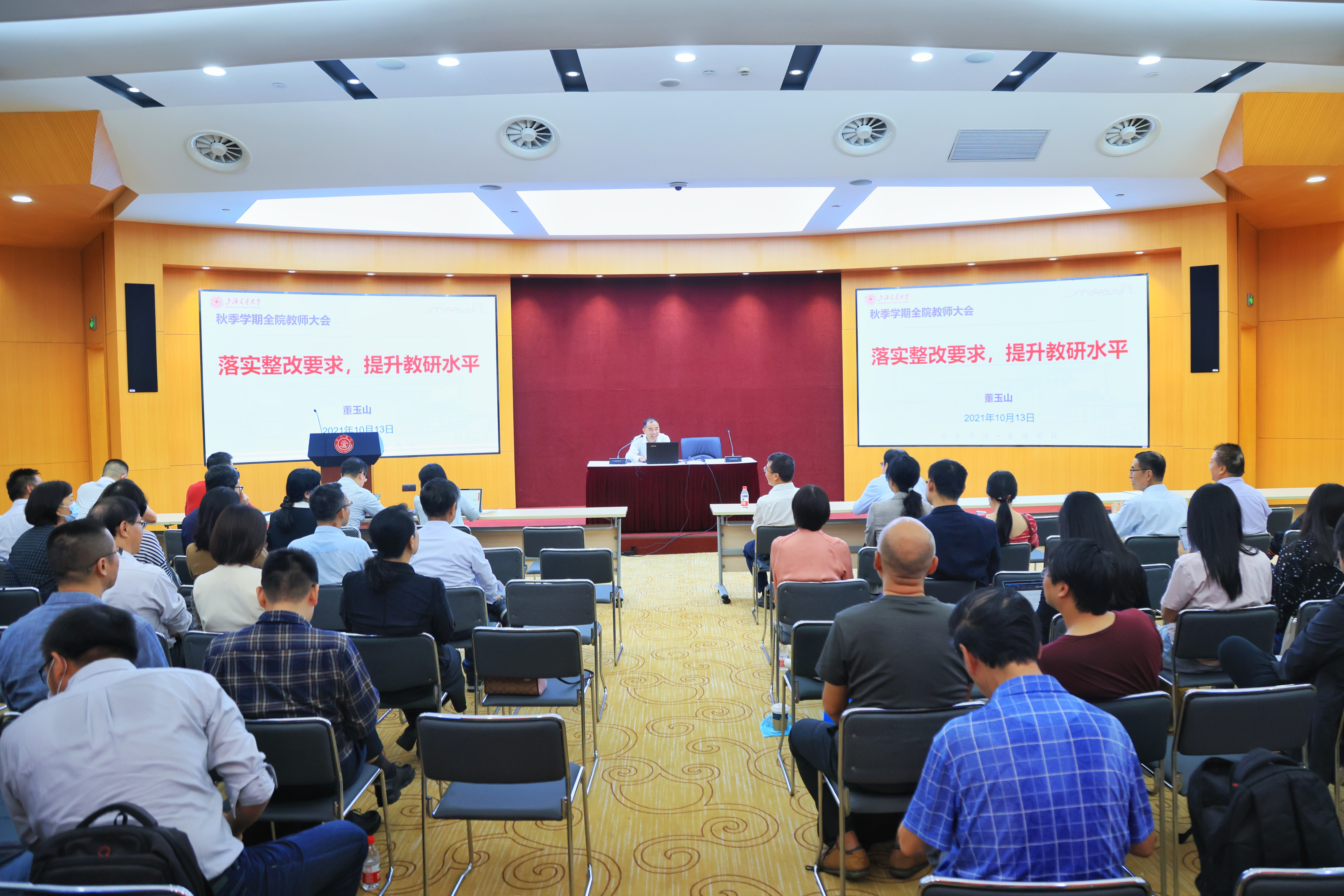 在图书信息楼8楼报告厅召开2021年秋季学期全院教师大会。院长邢云文、院党委书记董玉山,院党政班子成员及全体教职工参加会议。