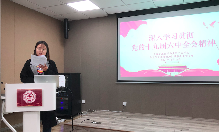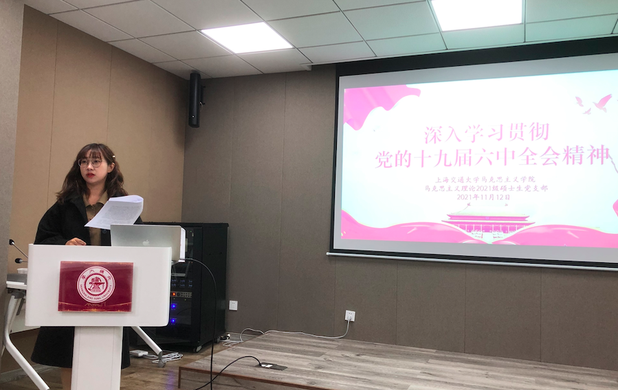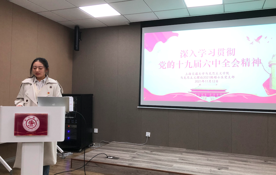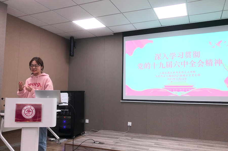 11月12日上午,马克思主义理论2021级硕士生党支部在老法学楼B401室开展学习党的十九届六中全会精神主题党日活动,活动由支部书记赵凌杰主持。