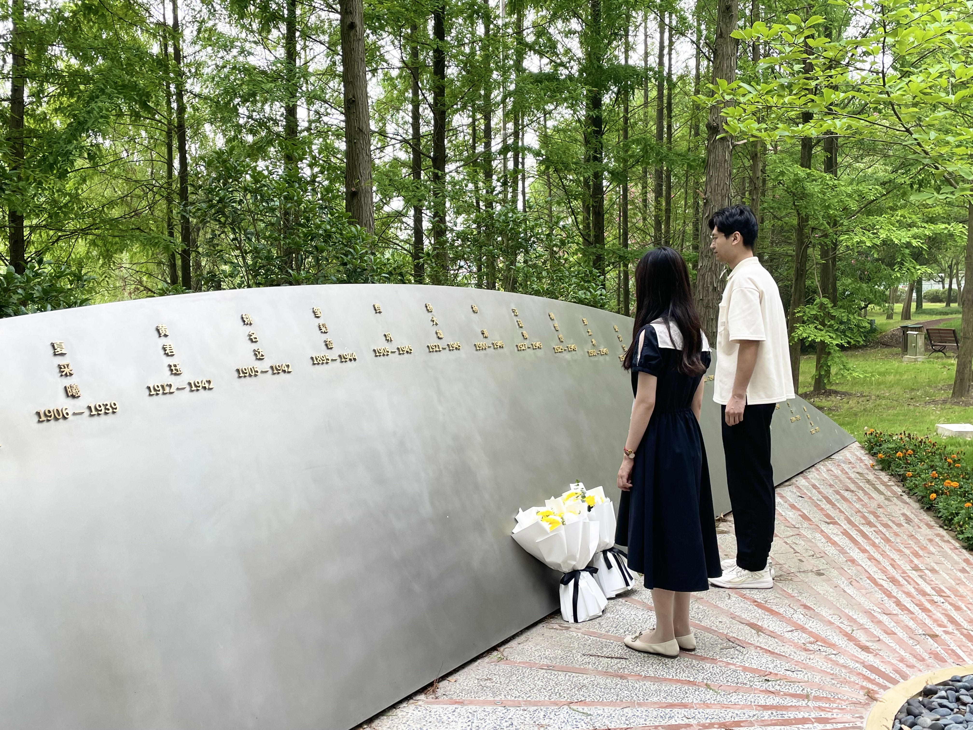 在庄严肃穆的英烈纪念雕塑前,新发展党员代表蒋鹏宇、林嘉悦手捧鲜花,缓步向前,向革命英烈敬献花束。马克思主义理论2021级硕士生党支部新发展党员林嘉悦表示,“我有幸作为新发展党员代表,为革命英烈们献上花束与敬意。‘小我’的生命是有限的,但是‘大我’的生命是不朽的。我们立志接续先辈们爱党爱国的革命精神,像一滴水汇入大海般,形成浩瀚无垠的‘大我’力量。”