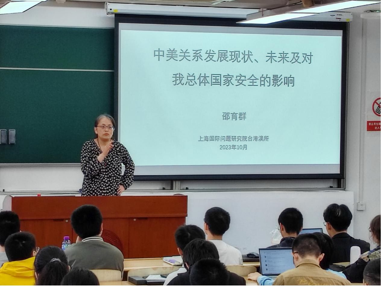 中美两国能否正确相处事关人类前途命运。为了帮助青年学生更好地认识中美关系,把握历史方位,拓展国际视野,增强使命担当,10月16日下午,上海国际问题研究院研究员邵育群应邀来院,围绕百年变局下的中美关系现状和未来做了主题报告。思想道德与法治教学班学生和学院部分老师共计一百余人参加报告会。