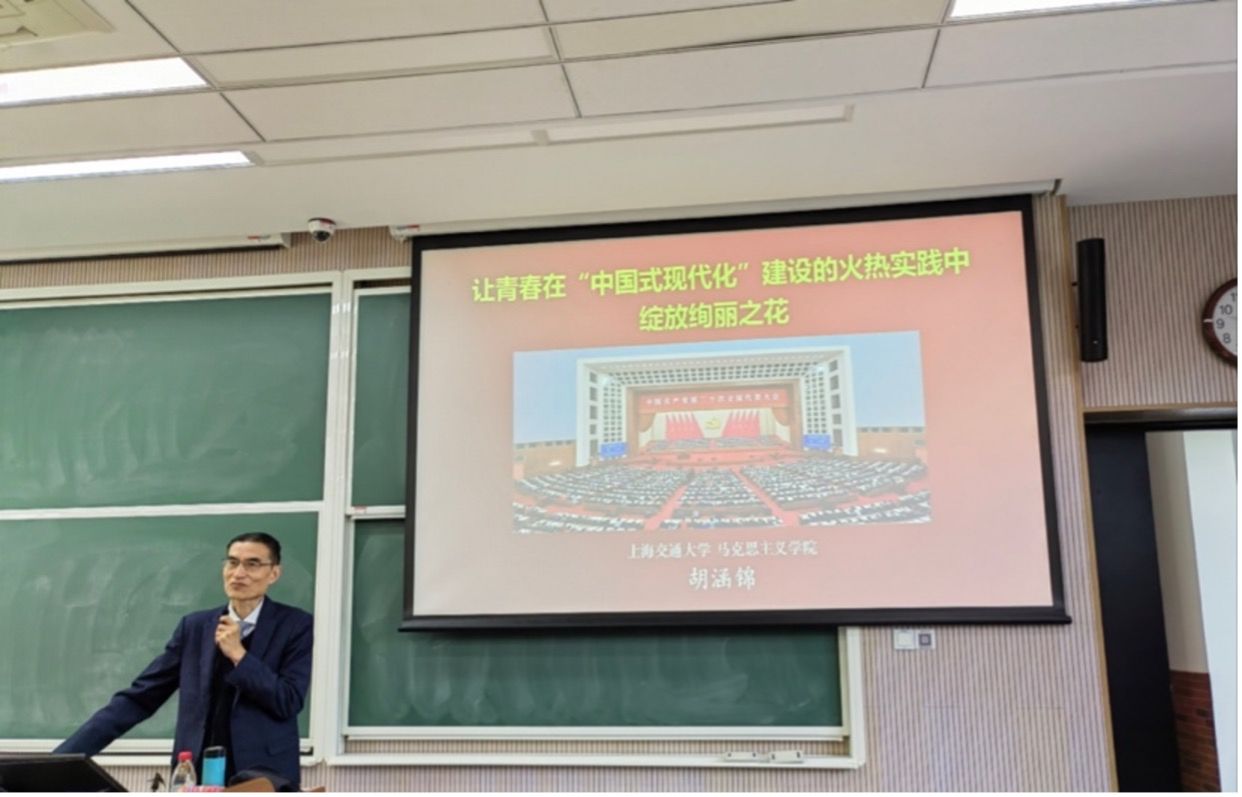 胡涵锦教授给全体学员授课,题目为:《让青春在“中国式现代化”建设的火热实践中绽放绚丽之花》。胡老师深入浅出地为同学们解读了二十大报告,梳理了二十大报告的基本框架、主要内容及大会主题,并围绕“中国式现代化”这一新的重要理念,带领大家回顾了新中国建国以来,对社会主义现代化建设展开的历史探索,更加完整地展现了中国式现代化的内涵意义和独特特征。胡老师以一曲《年轻的朋友来相会》结束授课,勉励各位学员自觉把思想和行动统一到党的二十大精神上来,把青春奋斗融入党和人民事业,在实现民族复兴的道路上奋勇争先。