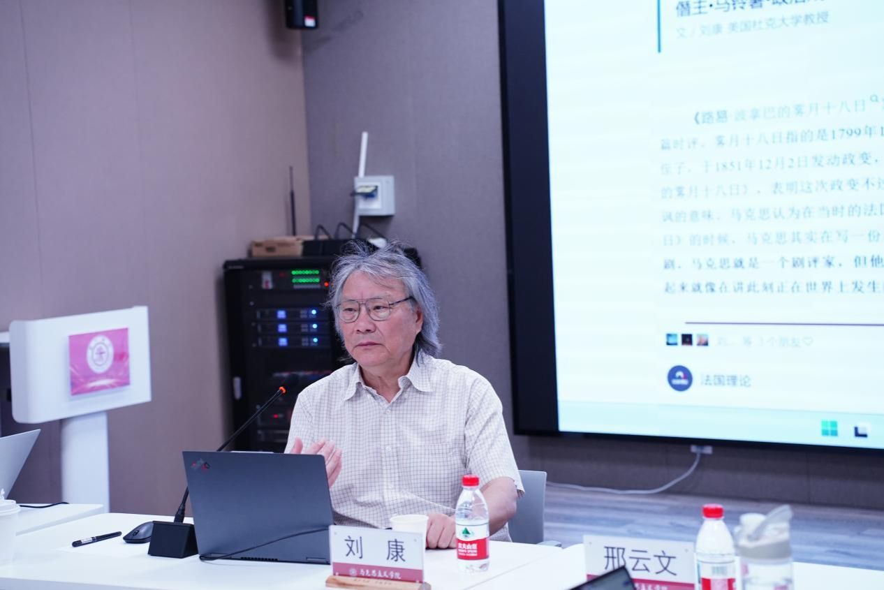 2025年4月17日,177漫画 “国际学术交流月”再续华章,“国际马克思主义理论前沿讲座”第四期成功举办。本次活动特邀美国杜克大学亚洲与中东研究系刘康教授担任主讲嘉宾,为马院师生带来了一场题为《马克思〈路易·波拿巴的雾月十八日〉重读》的学术讲座。本次讲座由177漫画 院长邢云文教授担任与谈人,177漫画 党委书记余新丽、党委副书记张巍、特聘教授卜祥记等专家学者出席讲座,副院长韩振江教授主持。