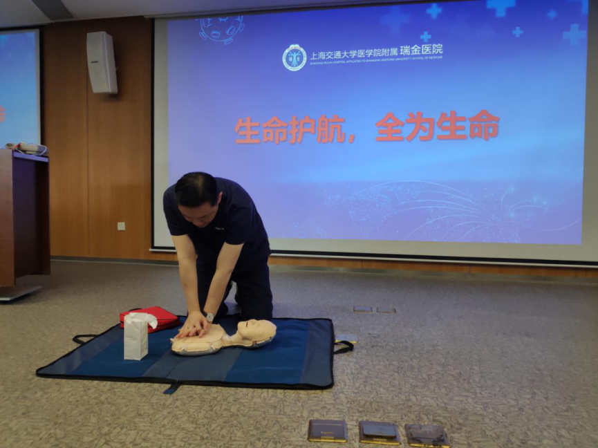 史霆老师以真实案例引导大家认识到AED和心肺复苏的重要性,告诫大家身为一名党员,遇到紧急情况时,更应当要毫不犹豫运用正确方法进行施救。随后史老师对院外心脏骤停的生存链进行了精彩的讲解示教。在互动提问环节,也一一解答了同学们的问题。