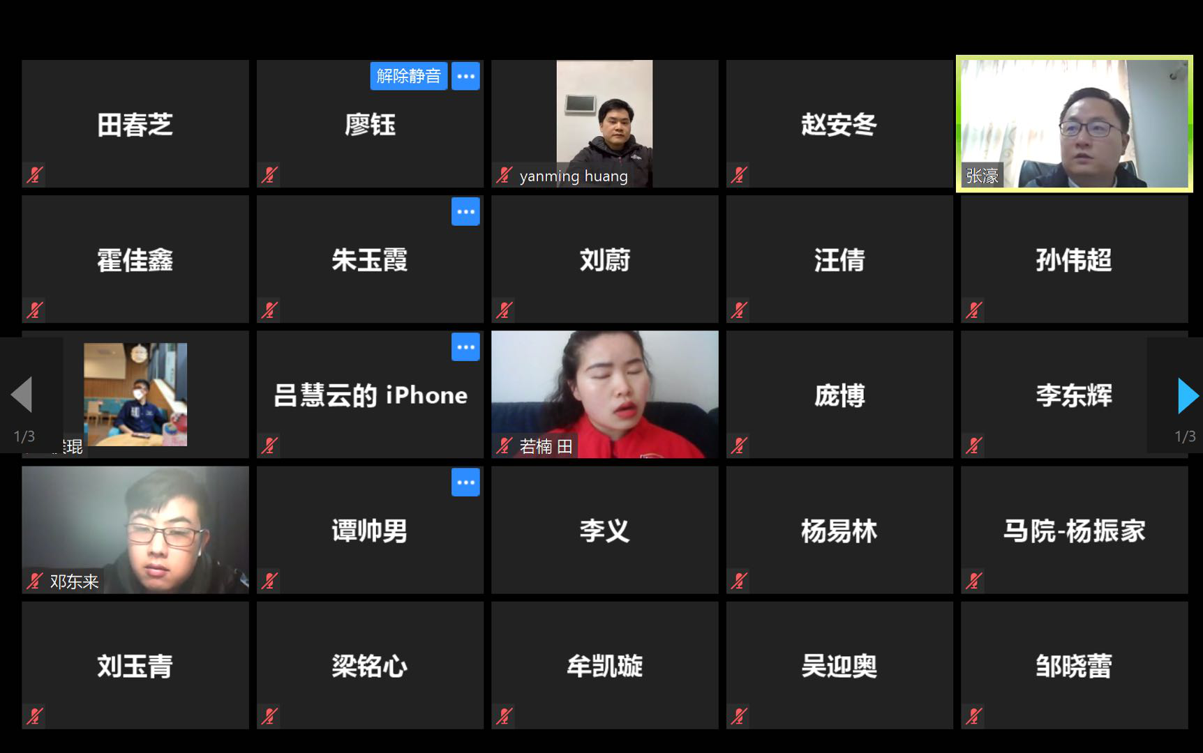 张濠老师代表学院对各位学生党员表示问候,并介绍了学校疫情防控的基本情况和安排。他希望各位同学在家做好防护,尽量避免出入人员密集场所,不可擅自回校。他还勉励各位同学在家积极进行学习和科研,争取取得高质量学术成果。