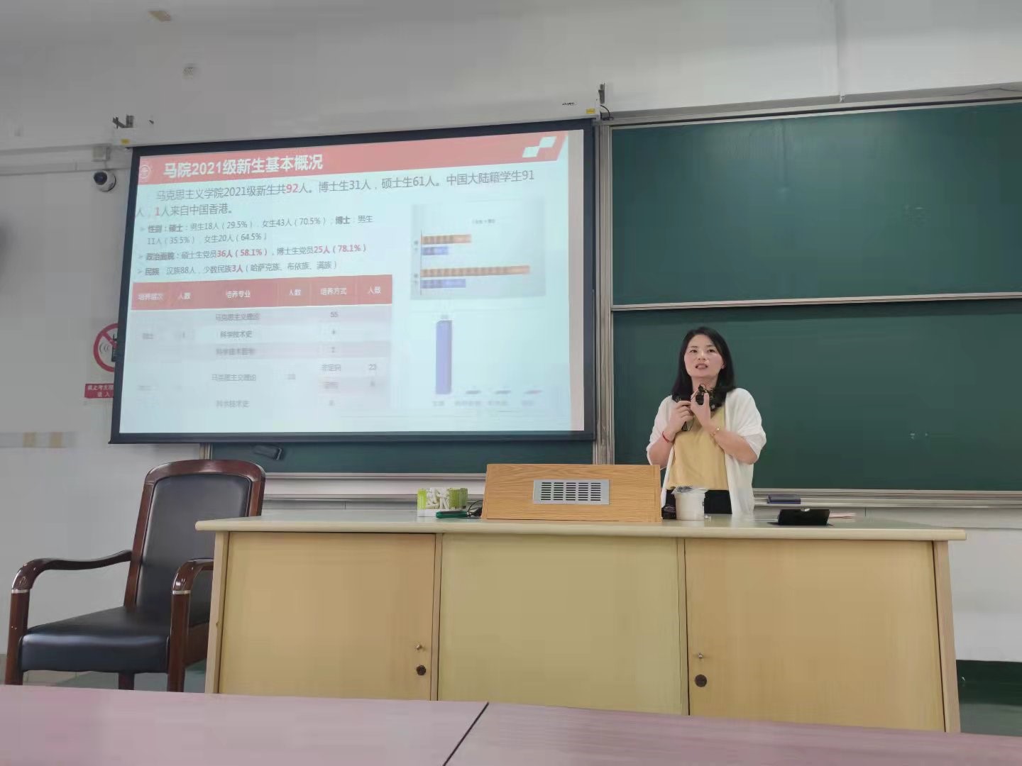 9月17日上午,177漫画 副书记任祝景为同学们详细讲解了学生奖助学金、勤工助学、助学贷款等同学们关心的事务以及学院对学生工作的各类支持计划,让每一位新生感受到马院这个大家庭的悉心关怀与温暖。